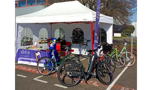 | Le stand Ilôvélo de la Maison du Vélo, déployé pendant 2 ans dans la zone aéroportuaire, s'ouvre désormais aux autres entreprises. |