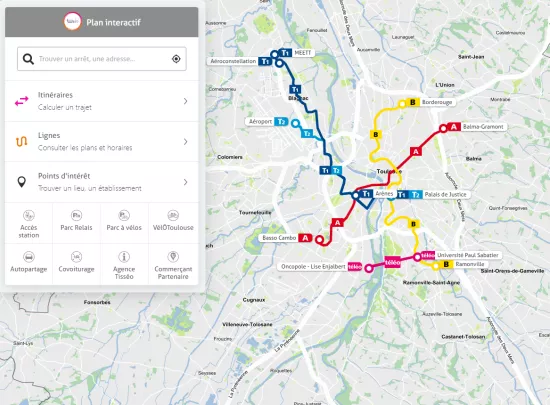 Le plan interactif Tisséo permet via une interface simple et épurée de calculer son itinéraire et d’appréhender l’ensemble de l’offre de transport en commun. Découvrez les nouveautés de la dernière mise à jour majeure 2023 : meilleure accessibilité smartphone, ajout des modes vélo et P+R au calcul d'itinéraires, données en temps réel en cas de perturbation de ligne, et bien plus encore.